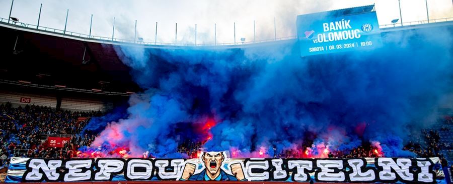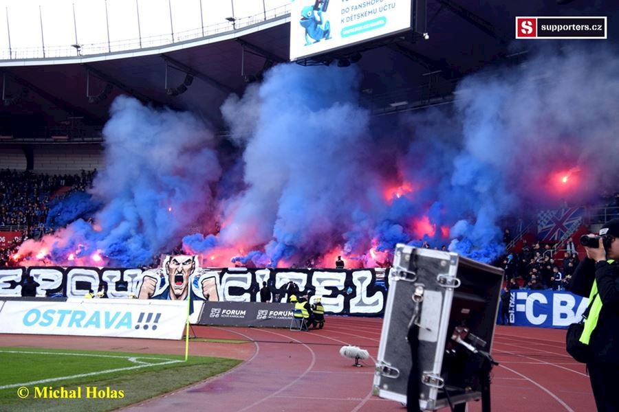 Znovu otevřený sektor Baníku hned zahalil dým a oheň... Nepoučitelní Chachaři opět dráždí Disciplinární komisi LFA... Podpora pro Janka HS a radost z bodu v sektoru hostů...